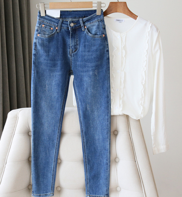 巨显瘦!奶油白色牛仔裤女高腰宽松老爹九分哈伦裤子2021春秋新款